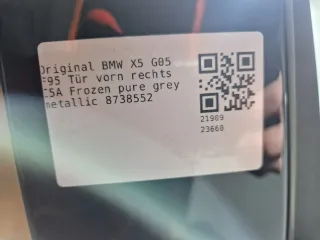 Original BMW X5 G05 F95 Tür vorn rechts C5A Frozen pure grey metallic 8738552