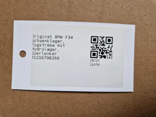 Original BMW 3er F34 Schwenklager Vorne Rechts, Zugstrebe mit Hydrolager, Querlenker 31216798260