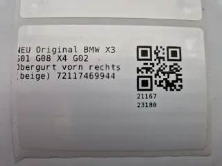 NEU Original BMW X3 G01 G08 X4 G02 Obergurt vorn rechts (beige) 72117469944